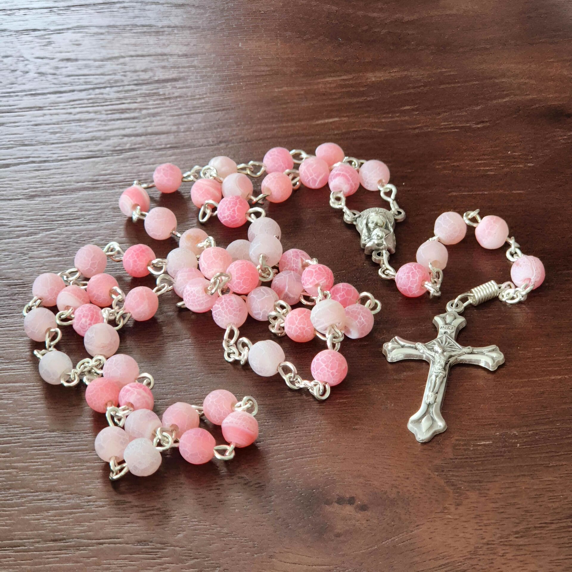 Šv. Klaros seserų rankų darbo agato karoliukų rožinis. Supakuota maišelyje.