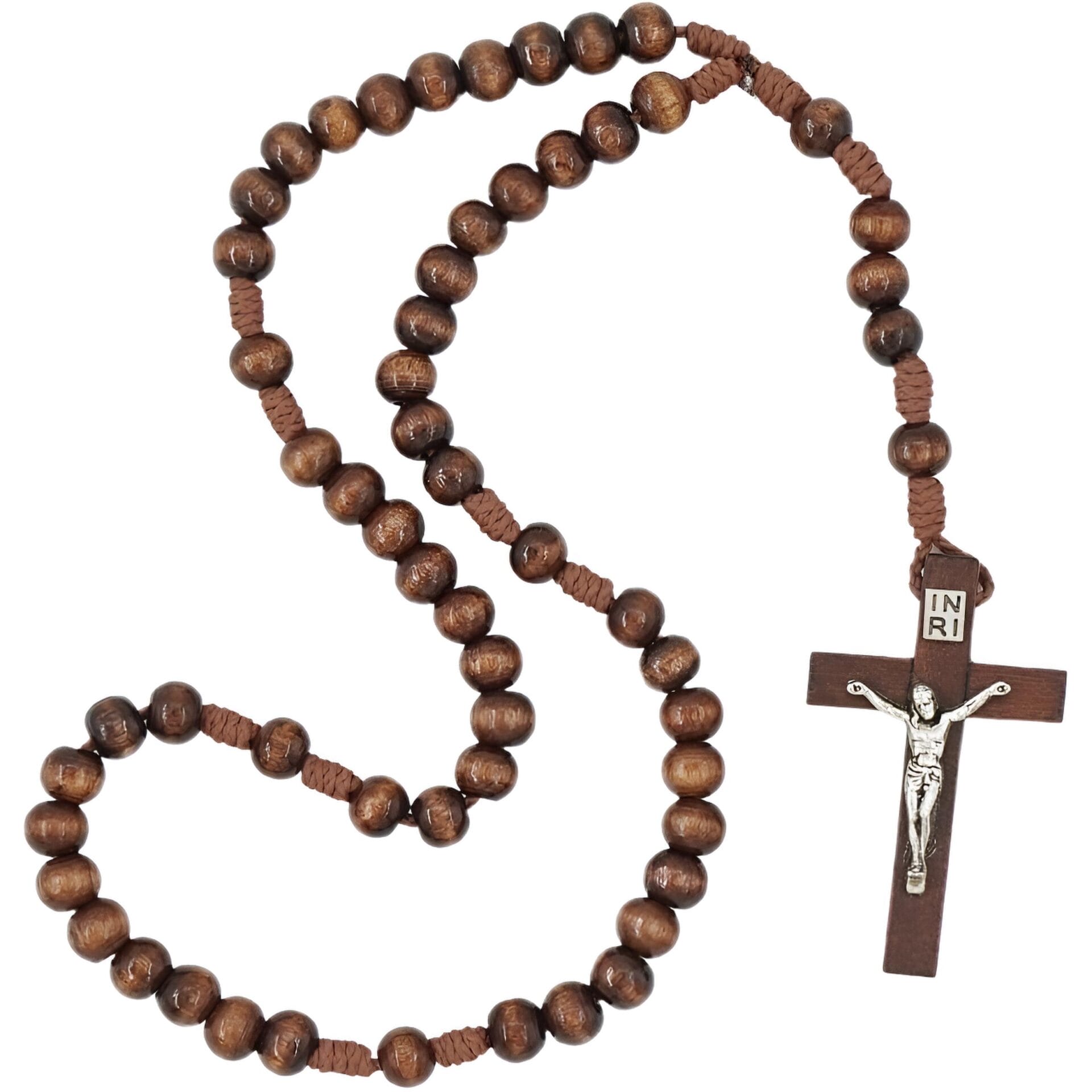 Rankų darbo medinių karoliukų rožinis.