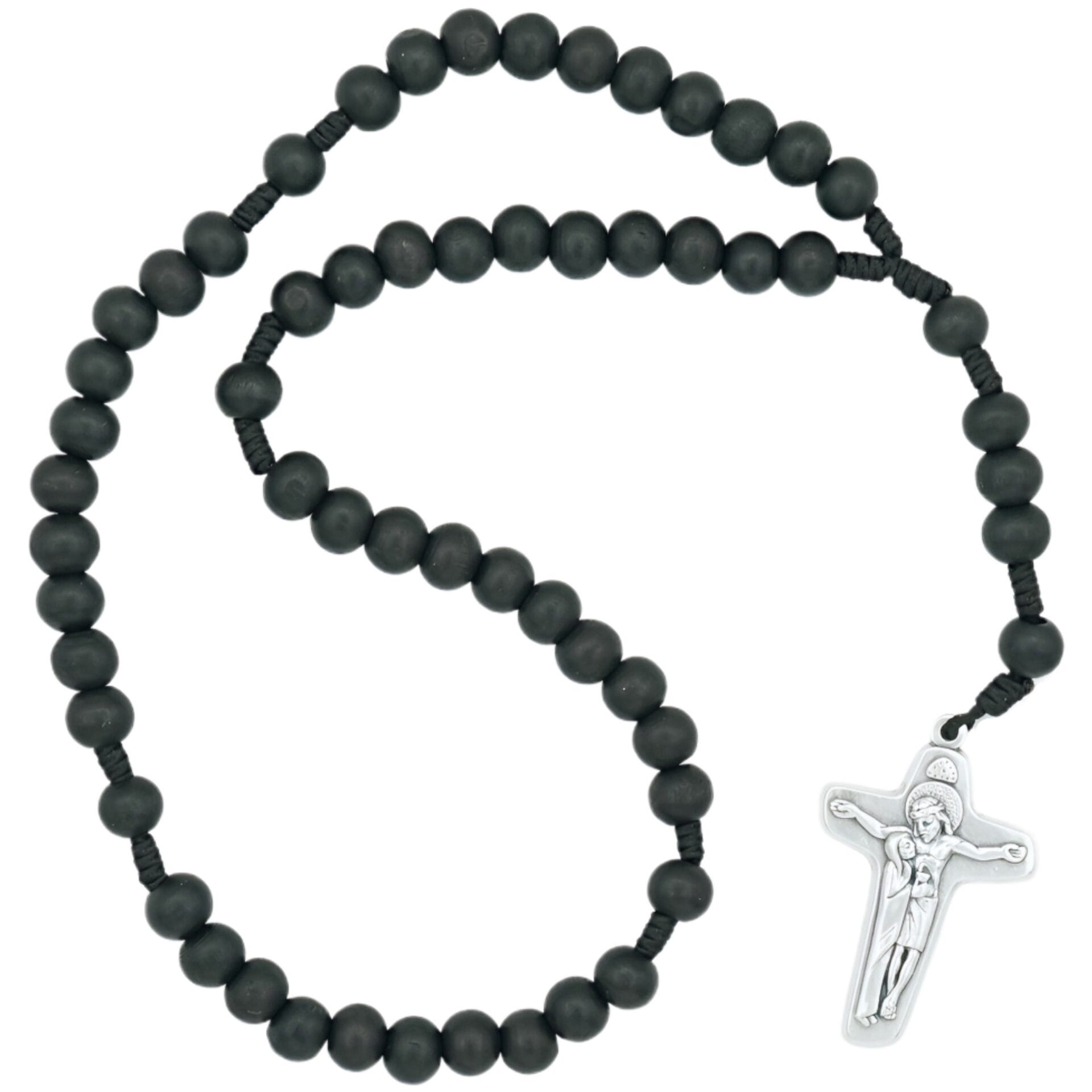 Rankų darbo medinių karoliukų rožinis.