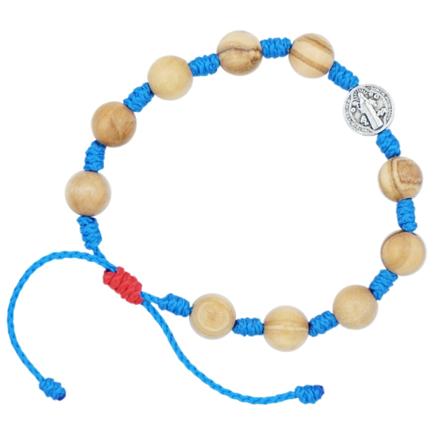 Šv. Jono seserų pagamintas alyvmedžio karoliukų rožinis-apyrankė su šv. Benedikto medaliuku.