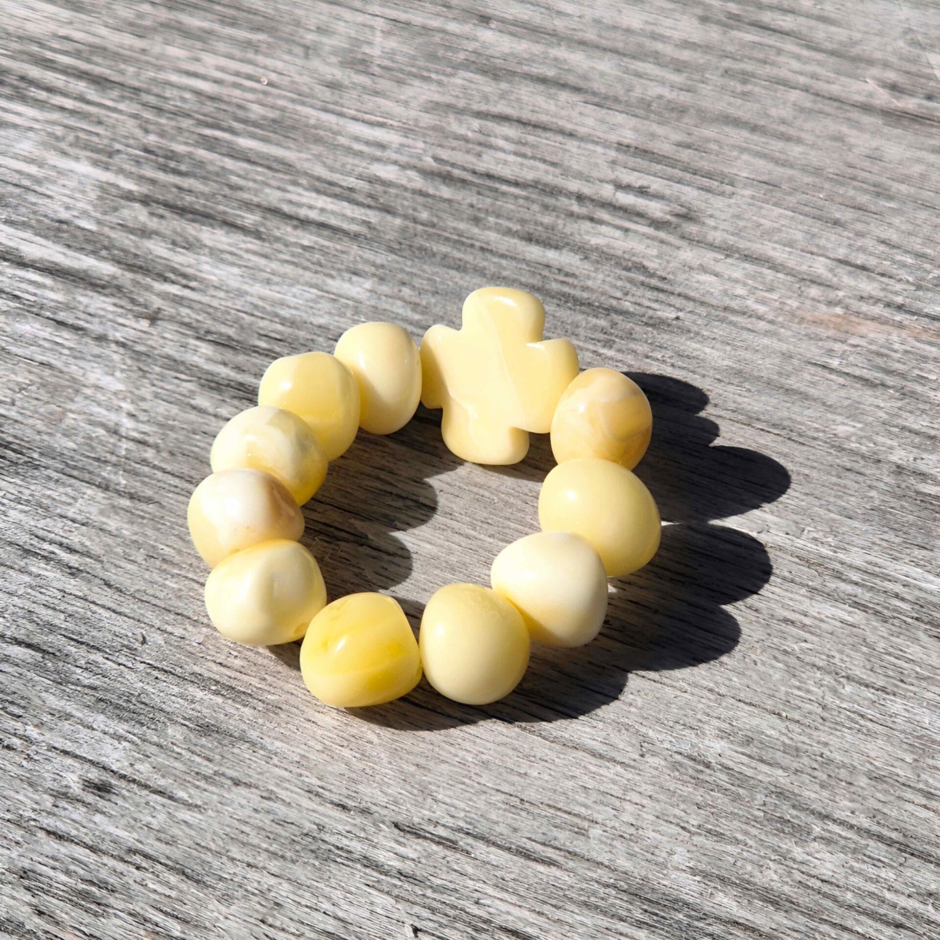 Rankų darbo balto gintaro vienos dalies rožinis-žiedelis.