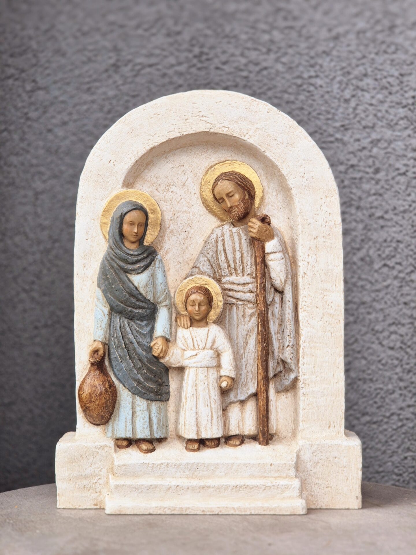Šventosios Šeimos bareljefą pagamino Betliejaus seserys iš Prancūzijos.