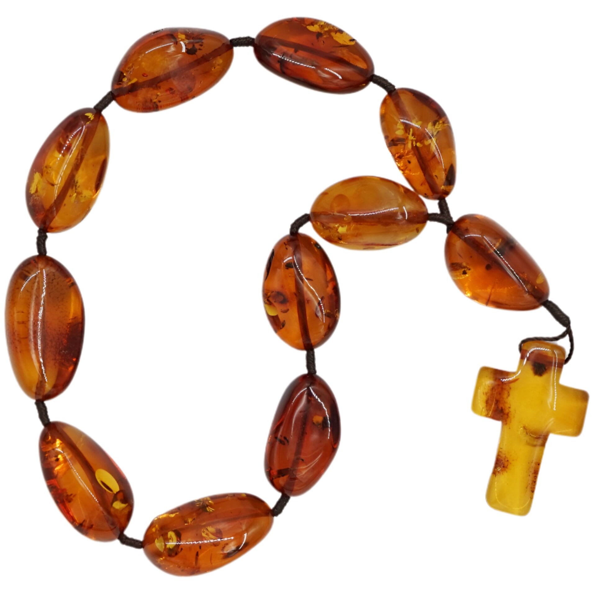 Rankų darbo gintarinis vienos dalies rožinis.